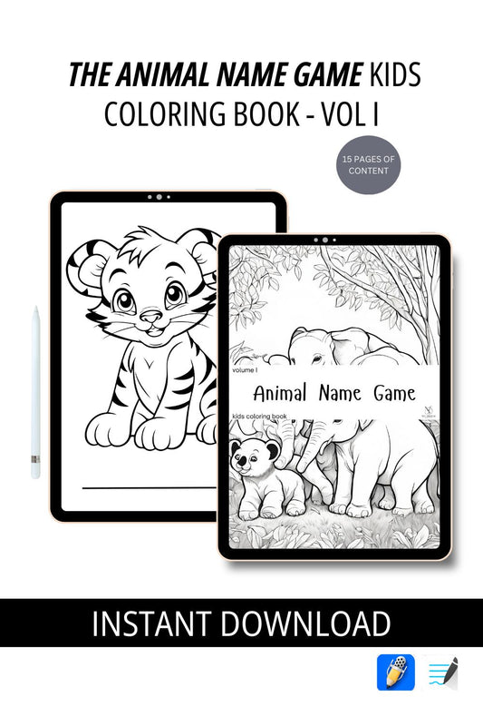 The Animal Name Game - Volume I Digital Kids Coloring Book